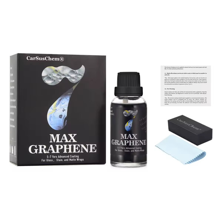 کیت نانو سرامیک خودرو گرافین مکس کارسوس مدل CarSus Graphene Ceramic Max جدید ترین نسل پوشش سرامیکی گرافن با ساختار ماتریکس مولکولی نانو خودترمیم اصلاح شده با پلی سیلازان سه بعدی است که نسبت مقایسه با سرامیک های بدنه خودرو پلی سیلوکسان نسل قدیمی مزایای زیادی تری دارد.